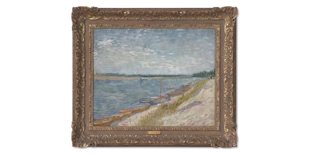 Vincent Van Gogh’s Les canots amarrés (Moored Boats) will go under the hammer for the first time in thirty years at Christie’s Hong Kong. The painting is expected to fetch $230 million to $380 million HK (about $30 million to $50 million USD), becoming the most expensive piece from the artist’s time in Paris.