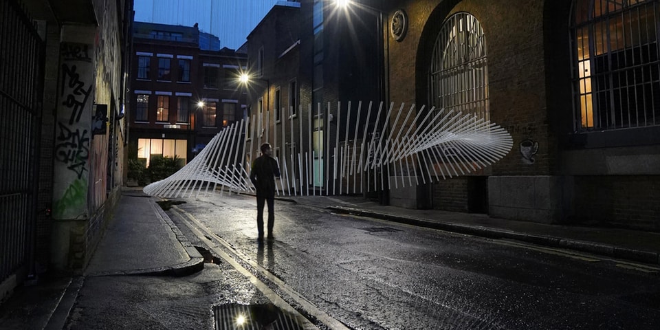Vincent Leroy continues to invest in the urban space with his latest project Ghost Halo. Suspended in an unassuming London street, a giant halo composed of 120 acrylic transparent tubes levitate above the ground, undulating and slowly deforming under the eyes of passers-by into an enigmatic and ghostly volute.
