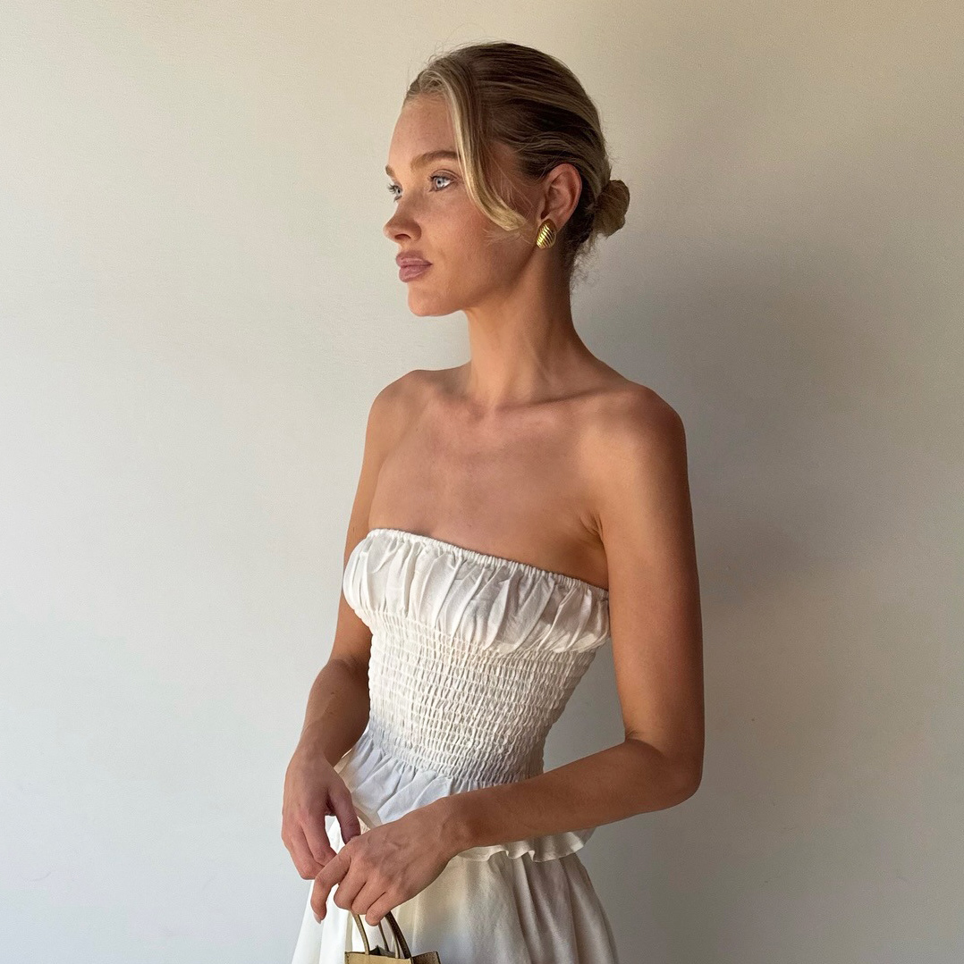Hosk is one of the most stylish, trend-forward celebrities we have, and she never fails to get her hands on the latest elegant It items, many of which are by The Row. When I saw that she just posted herself holding one of the brand’s newest bags to her Instagram feed, I took notice. The bag is The Row’s Small To Go Tote Bag, which Hosk opted for in mustard suede to pair with her cream-colored Helsa smocked tube top and balloon pants. Like many The Row bags, it’s as simple and elegant as can be. The Row has made a habit of creating no-frills, utilitarian designs that become quite iconic, and this bag is no exception.