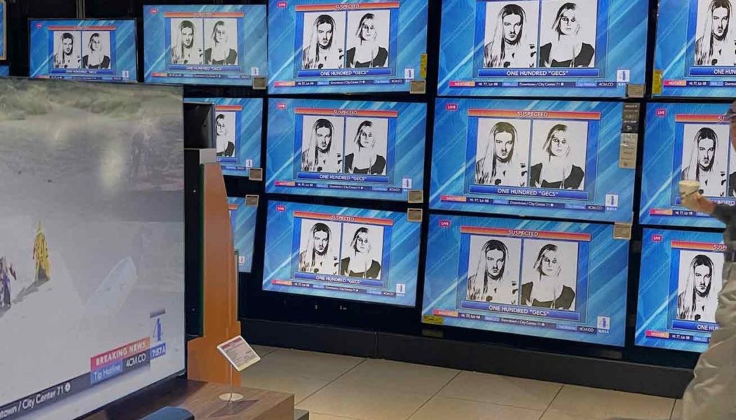 100 gecs have released a new music video for their song “Doritos & Fritos.” In the clip, directed by Chris Maggio, the duo can be seen flying through the air and dancing in a desert while baffled TV news stations track every move. Watch it below.