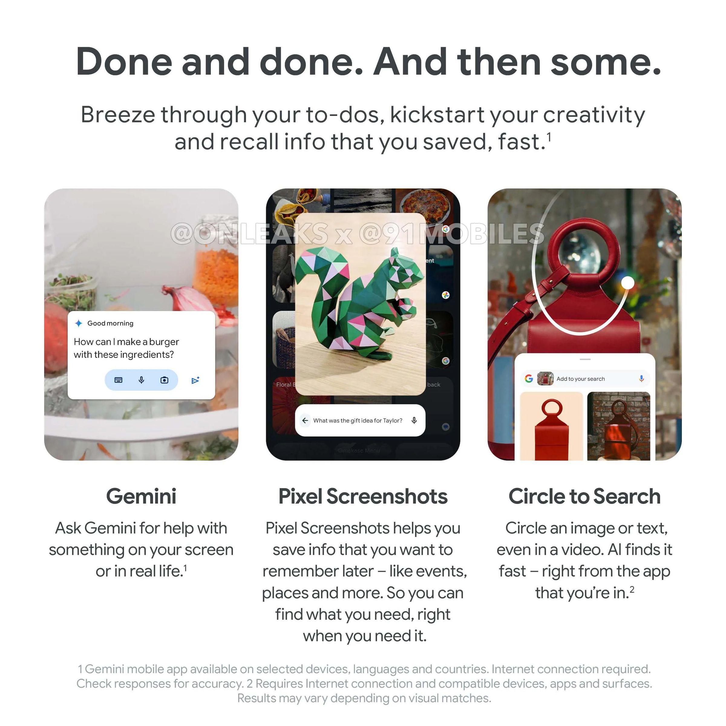 That tracks with a previous leak from Android Police, which suggests that the feature can “save and process helpful details” from your screenshots, letting you search through them. It sounds a bit like Microsoft’s controversial Recall feature but appears to only work on the screenshots you take manually, rather than scanning your entire device. The marketing materials also show an integration with Google’s AI chatbot Gemini, along with Circle to Search.