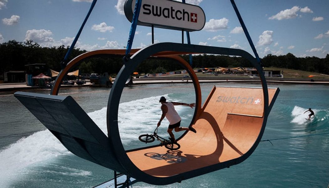 - Innovative setups include a floating halfpipe and the “Swatch Flying O”