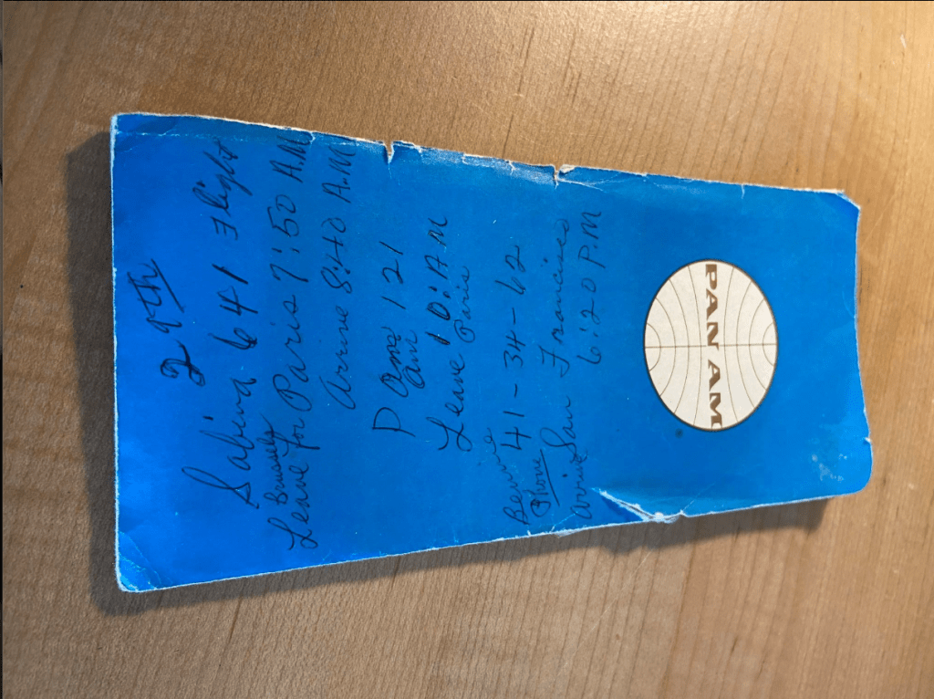 “I saved it because it reminded me of a bygone era,” she said. The old-fashioned ticket jacket is marked up with notes about the trip in her grandmother’s handwriting. “I remember that the fare was $487, which was a lot of money back in 1972.”