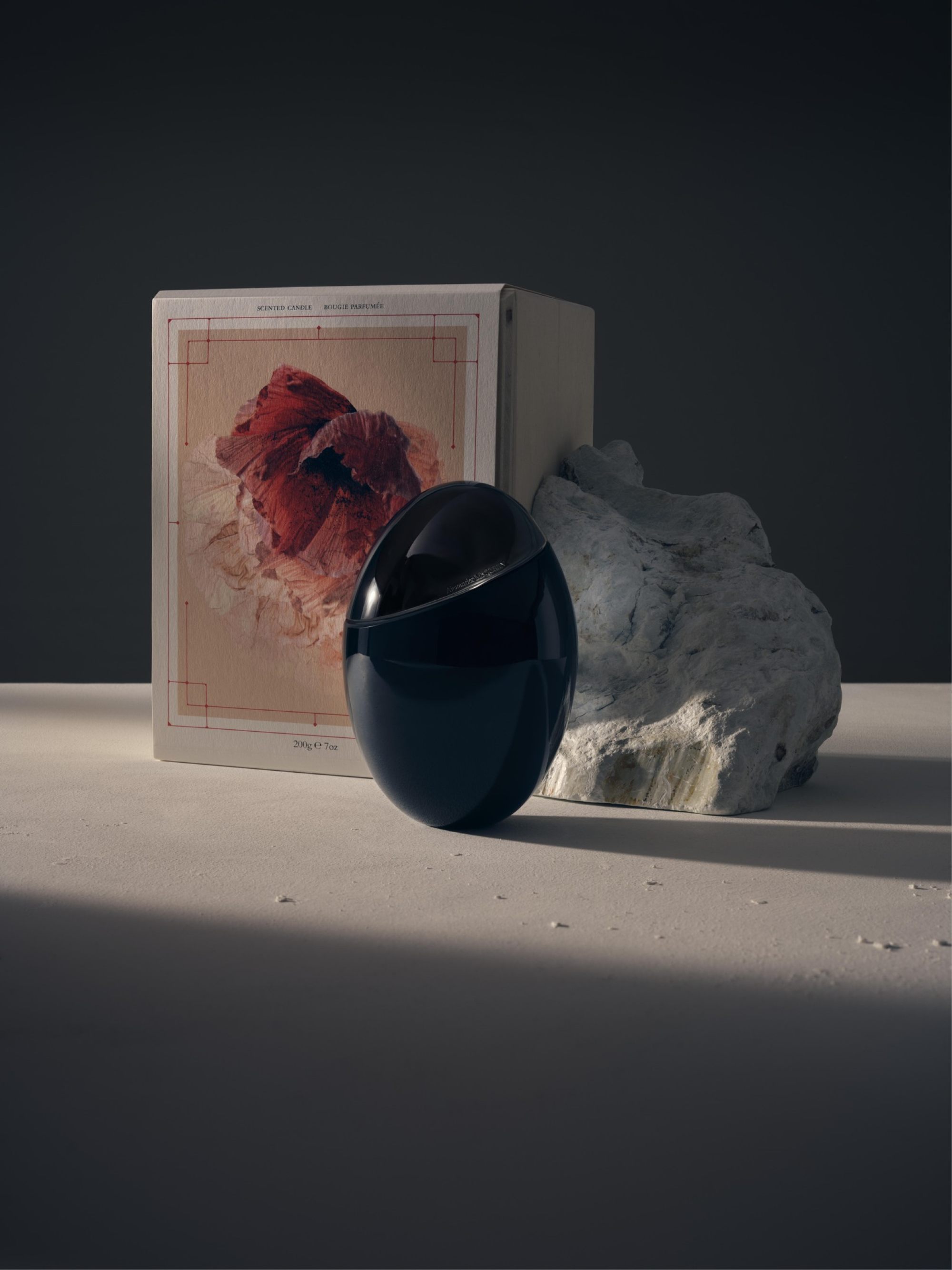 Take Alexander McQueen’s inaugural candle trilogy: Ghost Flower, Pagan Rose and Savage Bloom. Encased in egg-shaped black lacquered glass with silver, dark or gold metal lids, these candles are not just decorative – they become architectural elements within your living space.