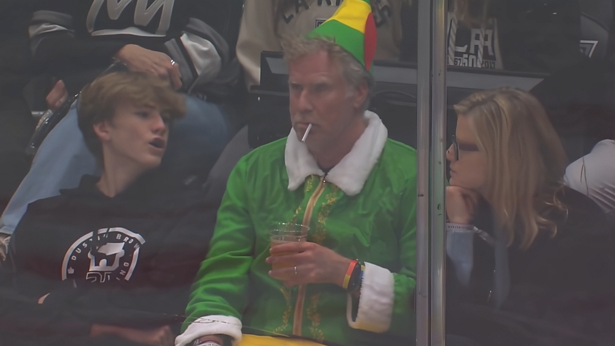 Will Ferrell has officially made it canon that Buddy the Elf is a fan of the Los Angeles Kings. On Sunday, the actor attended the hockey team’s game with the Philadelphia Flyers while dressed as his character from 2003’s Elf, looking quite worn out from the Christmas season.