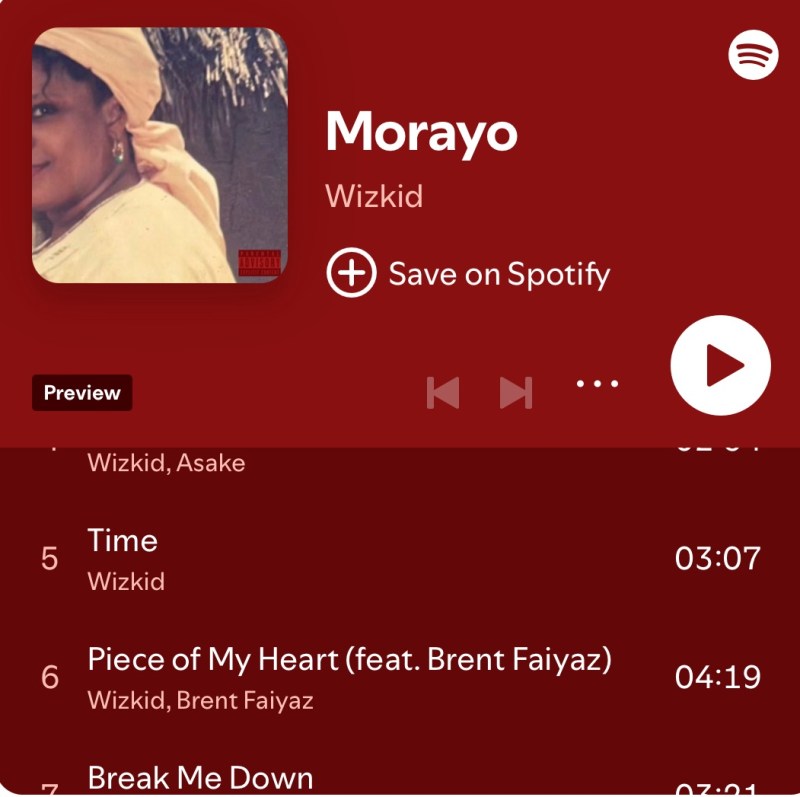Since its release, Morayo has captivated fans with its smooth melodies, introspective storytelling, and signature Afrobeats fusion, further solidifying Wizkid’s legendary status in the industry. The album features standout tracks that have resonated deeply with listeners, earning millions of streams and maintaining its grip on the charts.
