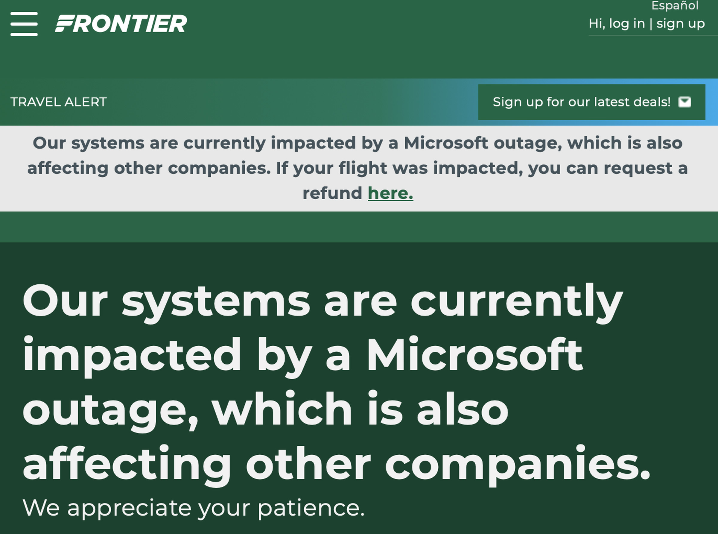 The issues are having a major impact for Frontier Airlines, which says on its website and on X that “our systems are currently impacted by a Microsoft outage, which is also affecting other companies.” The Federal Aviation Administration grounded Frontier flights but lifted the ground stop after 10PM ET, CNN reports.