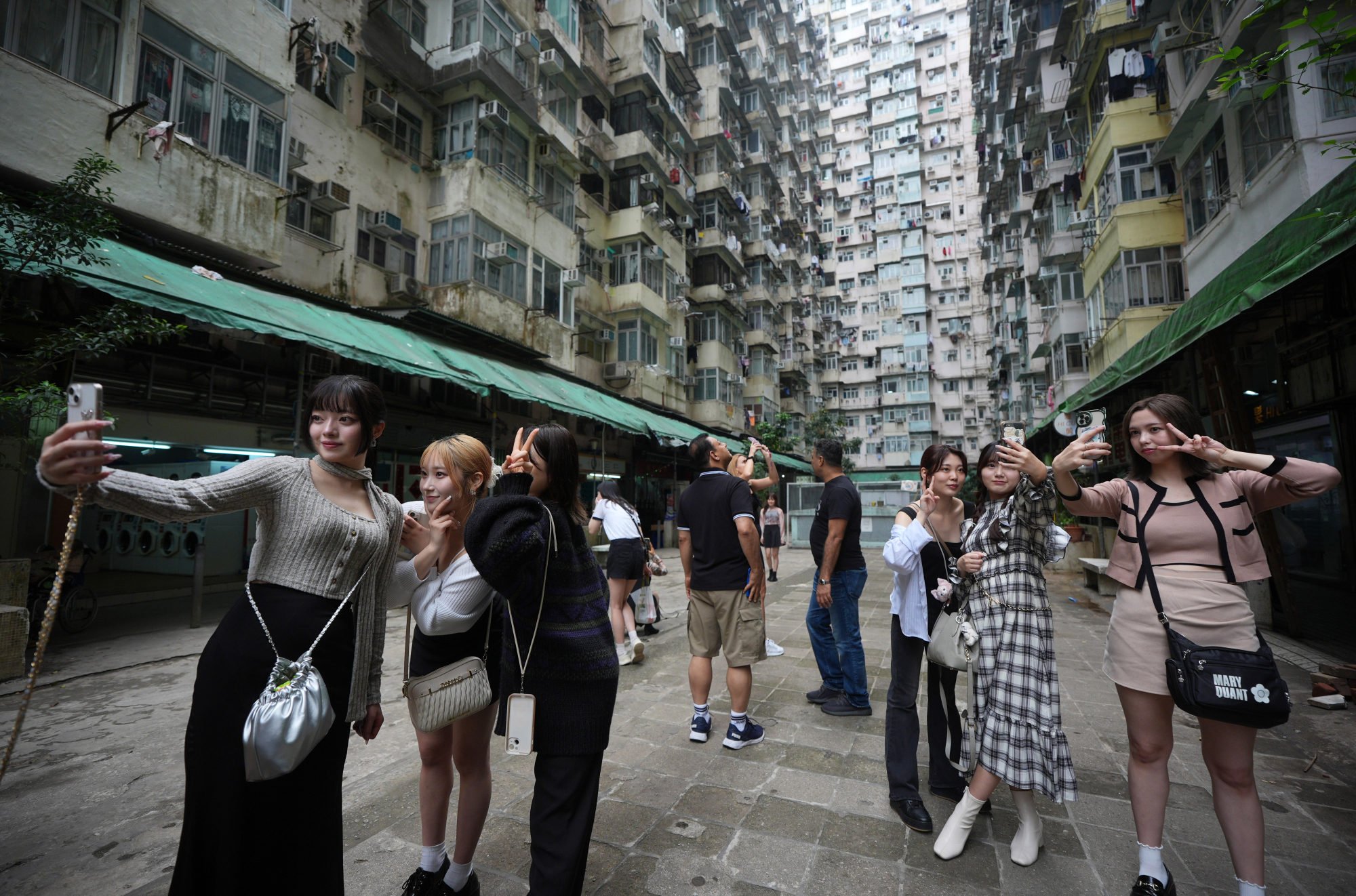 Tourists take pictures of the Yick Cheong Building in Quarry Bay. Photo: Eugene Lee