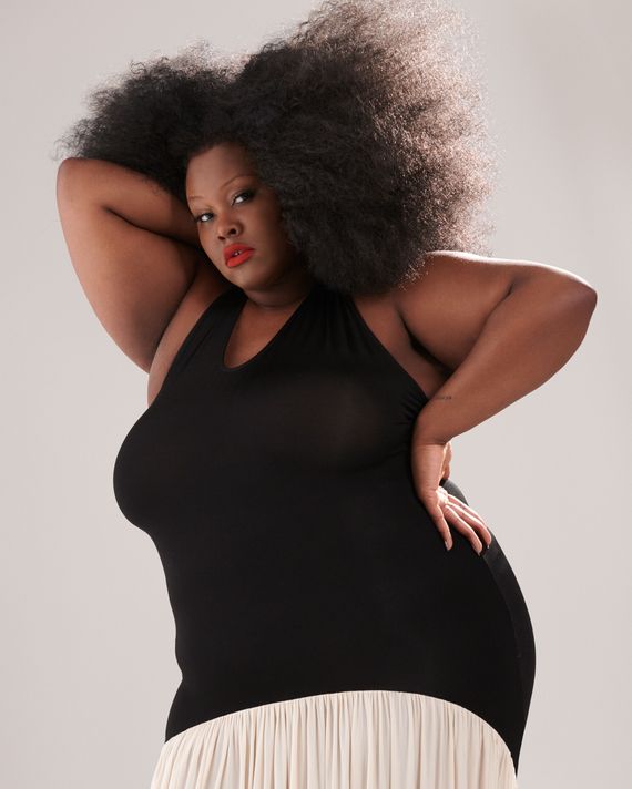 Soon after, that DM got her a dinner date with Demna in Paris, to talk more about collaborating on a capsule collection, even if that meant making custom pieces for her. Their dinner sparked a conversation about so much more. “It started a discussion about the needs and the specificities of my body,” she says. “Demna wanted to learn more about bras for larger women, having wider straps. We went into the details talking about underwear because we were talking about what my body needs. We even talked about calves and shoes, like wider feet and calves and what they need, all of those little details. He was attentive and honest in the way that he was listening.” She went on to walk Balenciaga’s runway and wear custom Balenciaga at the Cannes Film Festival last year.