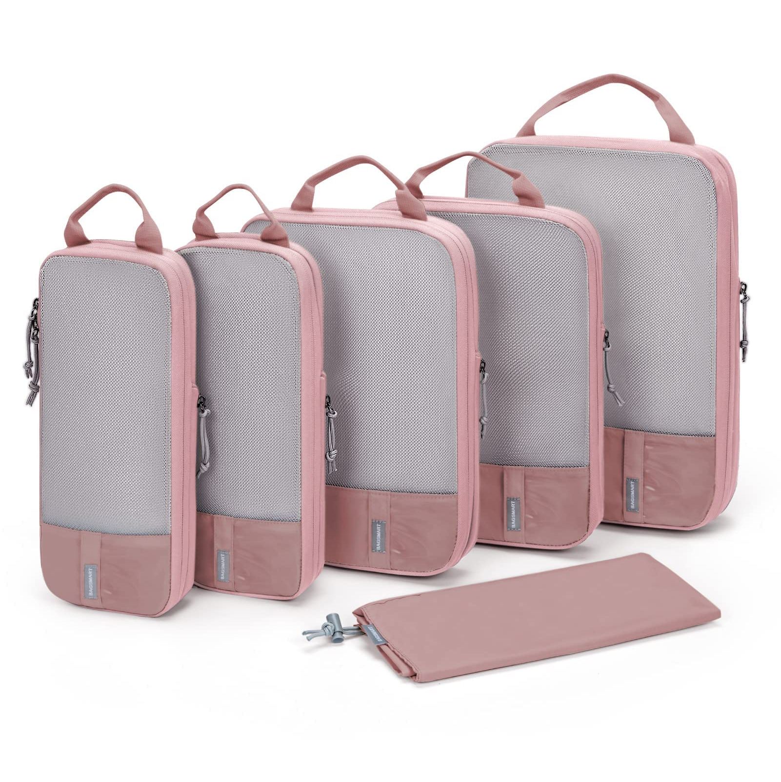 JSYK, there is a way to pack more without having to add another bag/suitcase to the mix. Three words: compression packing cubes. This set with nearly 10,000 glowing reviews is an overpacker’s dream. They each have an extra exterior zipper which really tightens up the seal on its own (no vacuum needed!) and minimizes the space inside the cubes—aka it squishes down all your clothes so they’re super flat. So make sure you opt for these instead of regular compression packing cubes if you wanna maximize space.