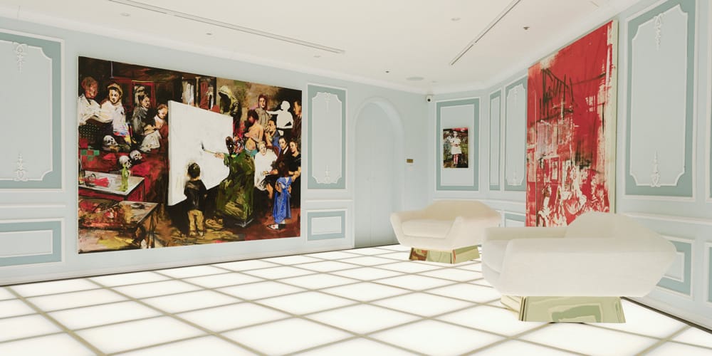 The exhibition spans three sections, beginning in the year 30,067, where Ida preserves fragments of a bygone world. Memory and nostalgia are realized through the long, meditative brushstrokes of In Space, while a series of sculptures resemble the likes of spiritual icons from the 20th century. Elsewhere, lush canvases of oceans and mountains reveal nature’s power, as The Ark contemplates the tension between the ephemeral and the eternal. The final act, Zero Hour, makes room for “a moment of rebirth.” Inspired by Courbet’s “L’ Atelier du peintre,” this return to figurative portraiture folds the past, present and future in a sacred celebration of the cosmos.