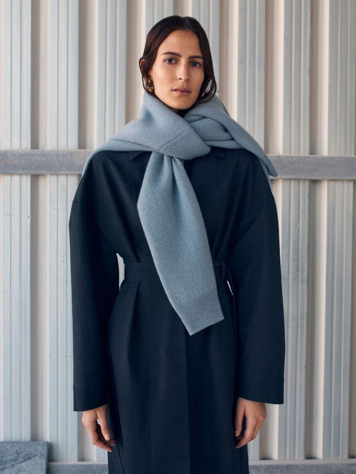 In the mix you can expect wool coats, tailoring, soft knits, and sleek yet simple accessories (in short, everything we’d like to wear on repeat this winter), and for those who are drawn to the minimalist aesthetic of The Row, Jil Sander or Margaret Howell (but not the four figure price tag), you’re going to find a lot to love in this capsule. And, should you be wondering about the quality of the pieces, alongside Studio Nicholson’s eye for well-crafted detail, there’s also deliberate care given to the choosing the right fabrics too. There’s a signature trench in organic cotton, an insulated jacket filled with recycled down, voluminous puddle pants in Responsible Wool Standard certified wool, and what are cosily known as “cocooning knits” in recycled cashmere blends to make sure every piece feels as good as they look.
