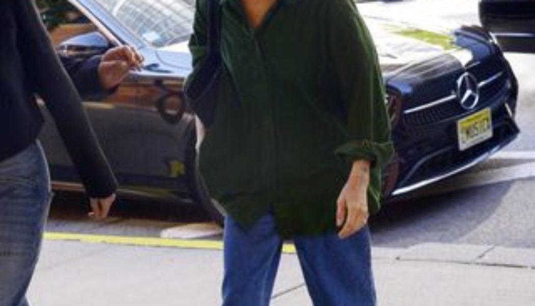 Yesterday, the actor and director of Blink Twice made a striking appearance as she arrived for a taping of The Drew Barrymore Show in New York City. She sported a chic ensemble consisting of The Row’s baggy jeans, a stylish army-green button-down shirt, trendy sunglasses, and a sophisticated tote bag. In a break from her usual loafers and slingbacks, Kravitz opted for a laid-back look by selecting classic slip-on sneakers from Vans.